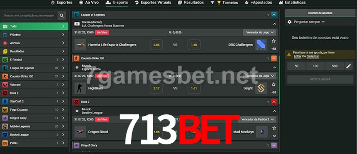 O 713Bet oferece uma grande seleção de opções de apostas em e-sports com probabilidades competitivas